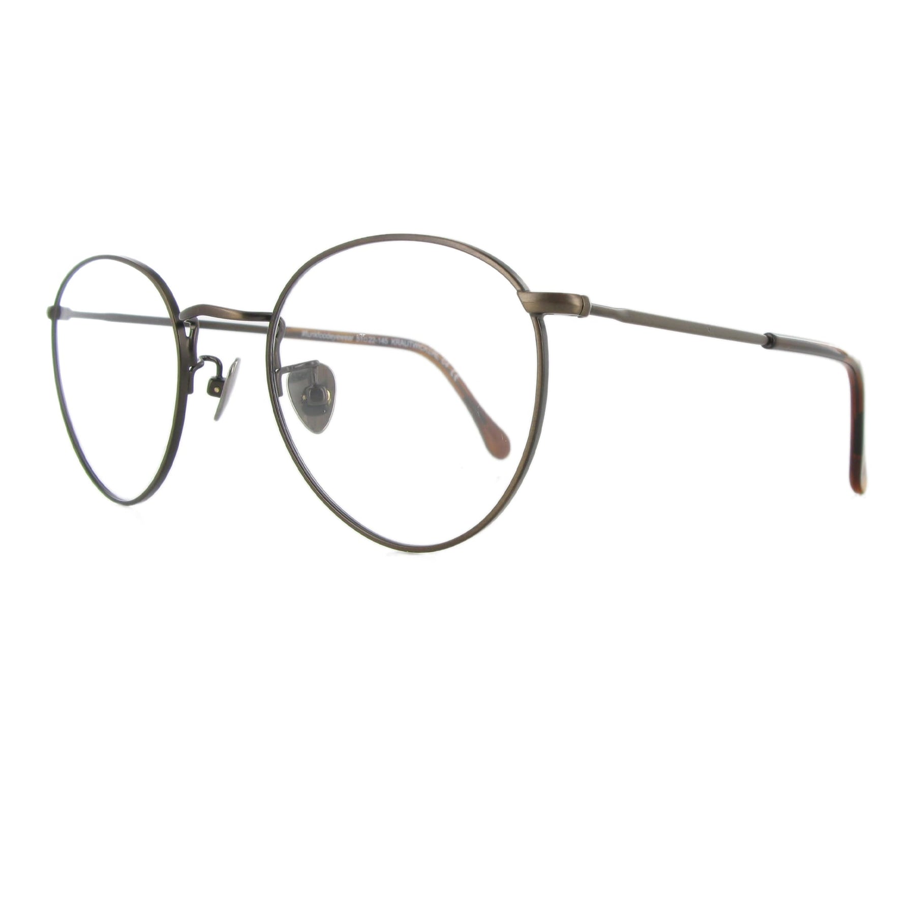 Die Krautwickerl Brille hat eine klassische Pantoform, die mit Titan Nasenpads und Acetatbügeln. ausgestattet ist. Ob in glänzend silber oder in antik-gold – Oma fände diese Brille sicher mega! Inklusive Brillenetui.